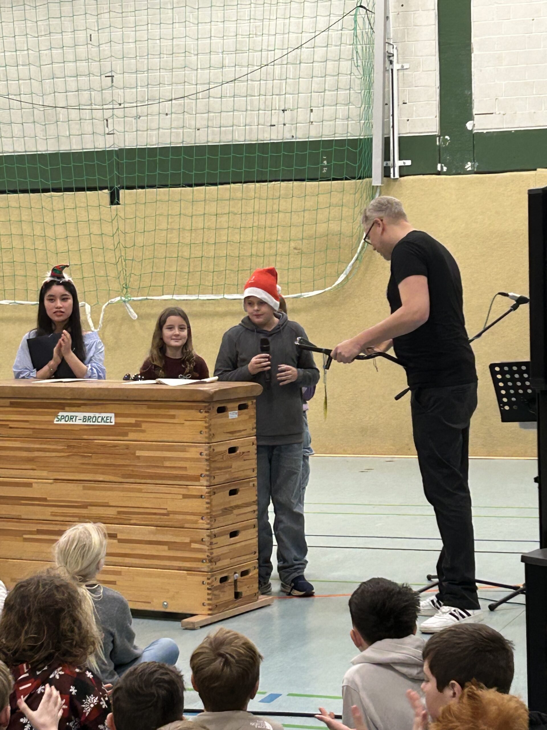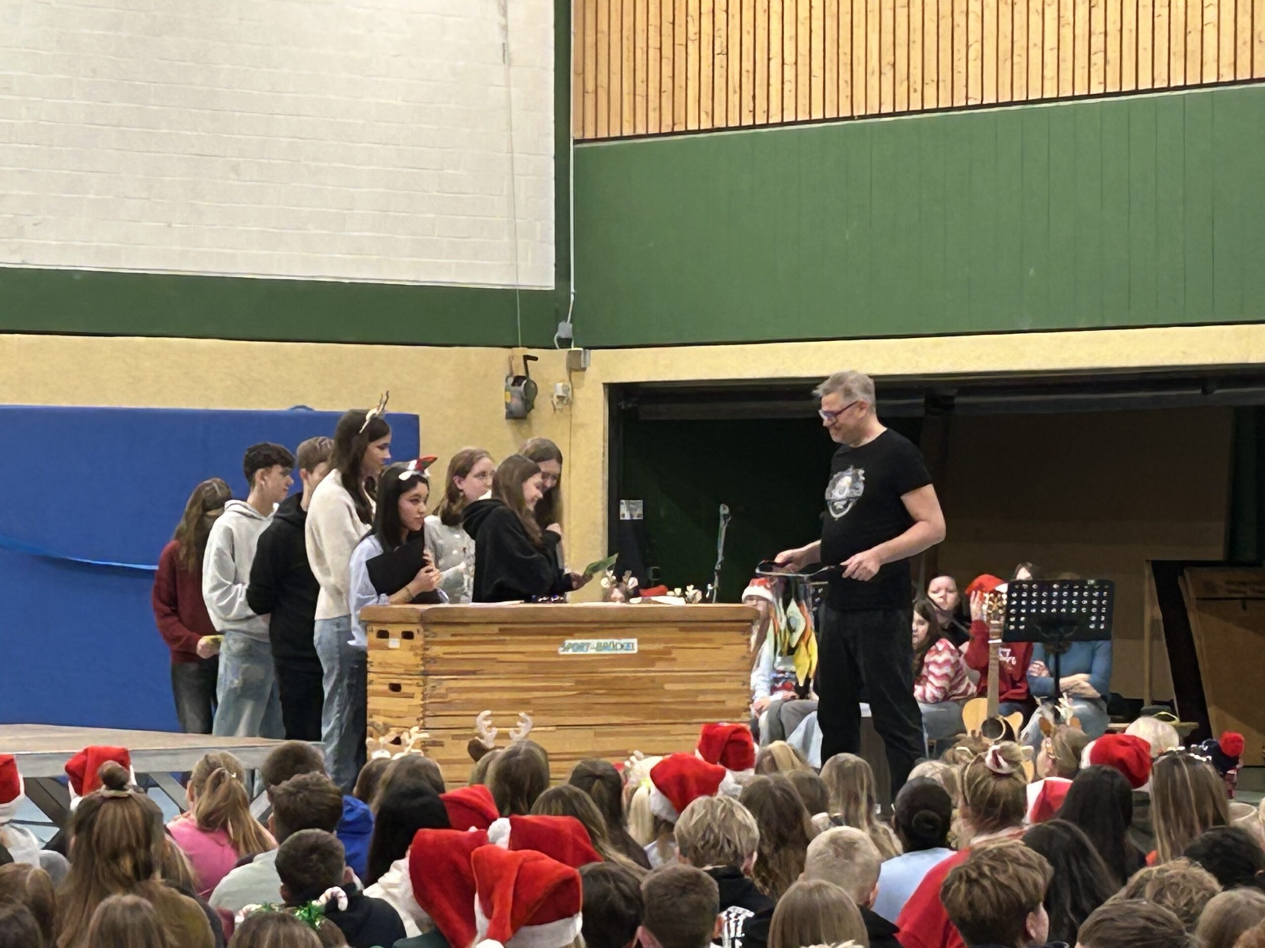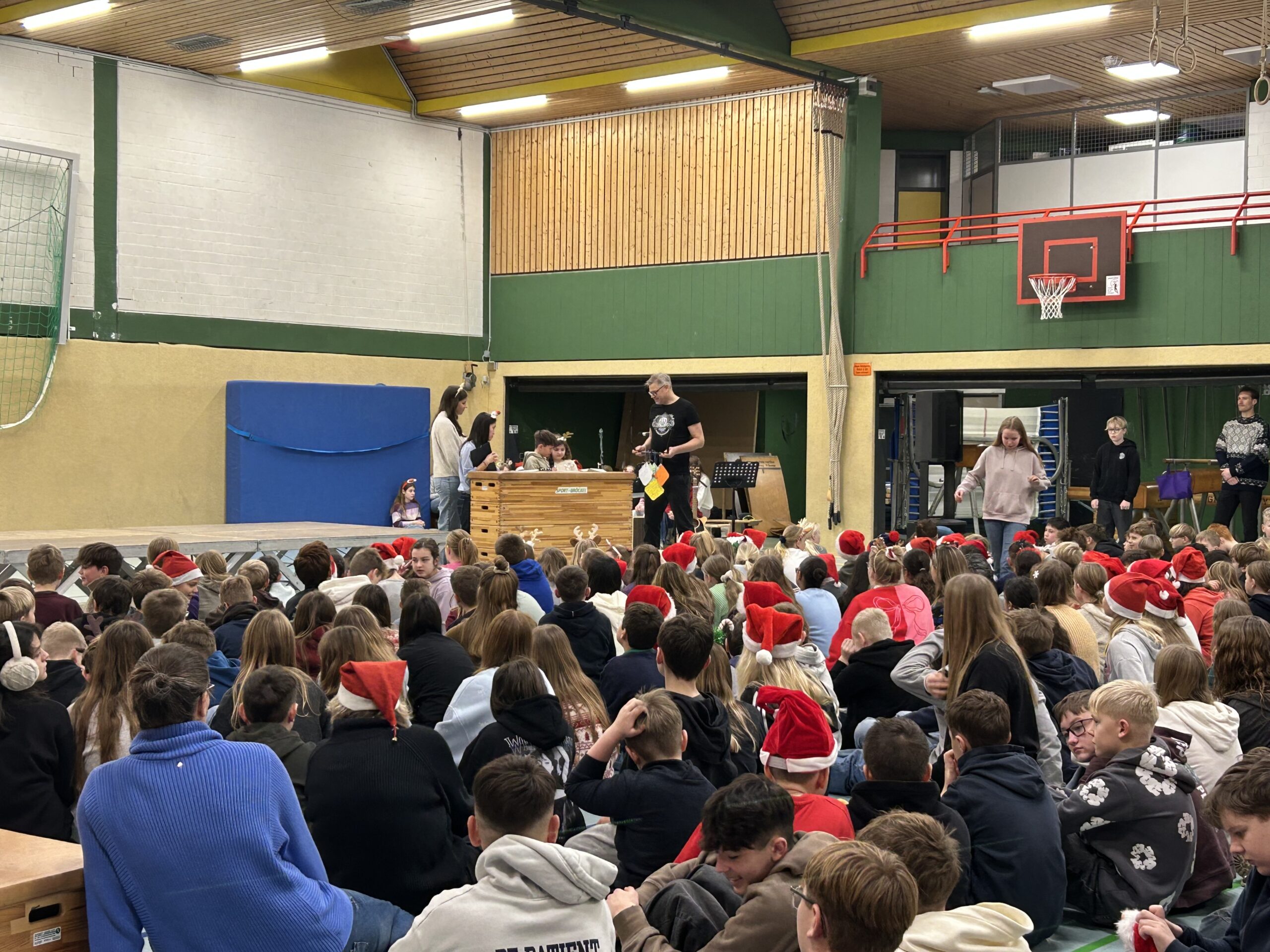 Mit einer gemeinsamen Vollversammlung in der Sporthalle haben wir unseren neuen Schulleiter Ingo Voß offiziell in seinem Amt willkommen geheißen. Die gesamte Schulgemeinschaft, alle Schülerinnen und Schüler sowie alle Lehrkräfte, waren dabei, ein starkes Zeichen für Zusammenhalt und gemeinsames Ankommen.